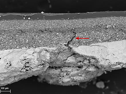 Rissbildung in Lackschicht durch Mangel in Grundierung